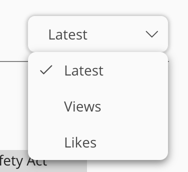 The filter dropdown, in the top-right corner of the Recently added content screen, allows you to sort the list of content by recency, most views, and most likes.