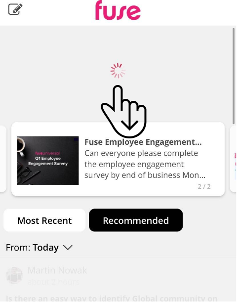 To refresh the social feed on the mobile app, swipe down from the top of the feed.