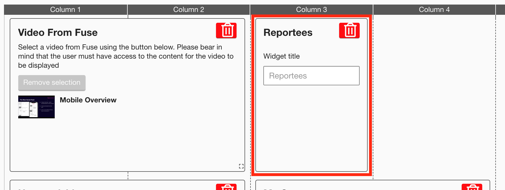 The Reportees widget appears on the layout grid.[Optional] In the Widget title field, enter a custom title that will be displayed on the widget.