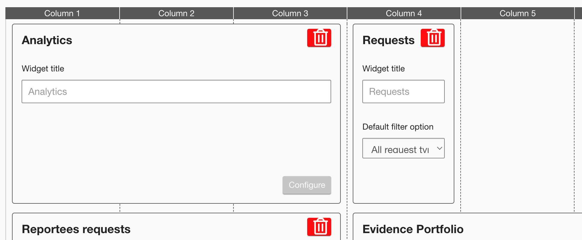 Default Manager Dashboard: Used to configure the default layout for the Manager/Reportee screen, viewable to all managers who do not have access to a manager-specific dashboard.