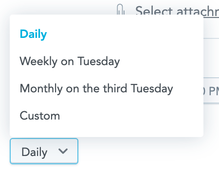 In the Repeats section, select how often this email will be sent to recipients. Scheduled emails can be sent on a daily, weekly or monthly basis, as well as at a custom interval.