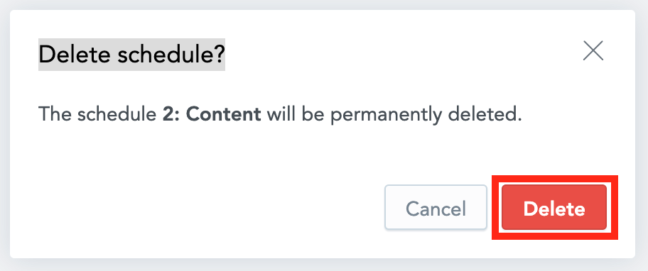 In the Delete schedule? popup, click Delete.