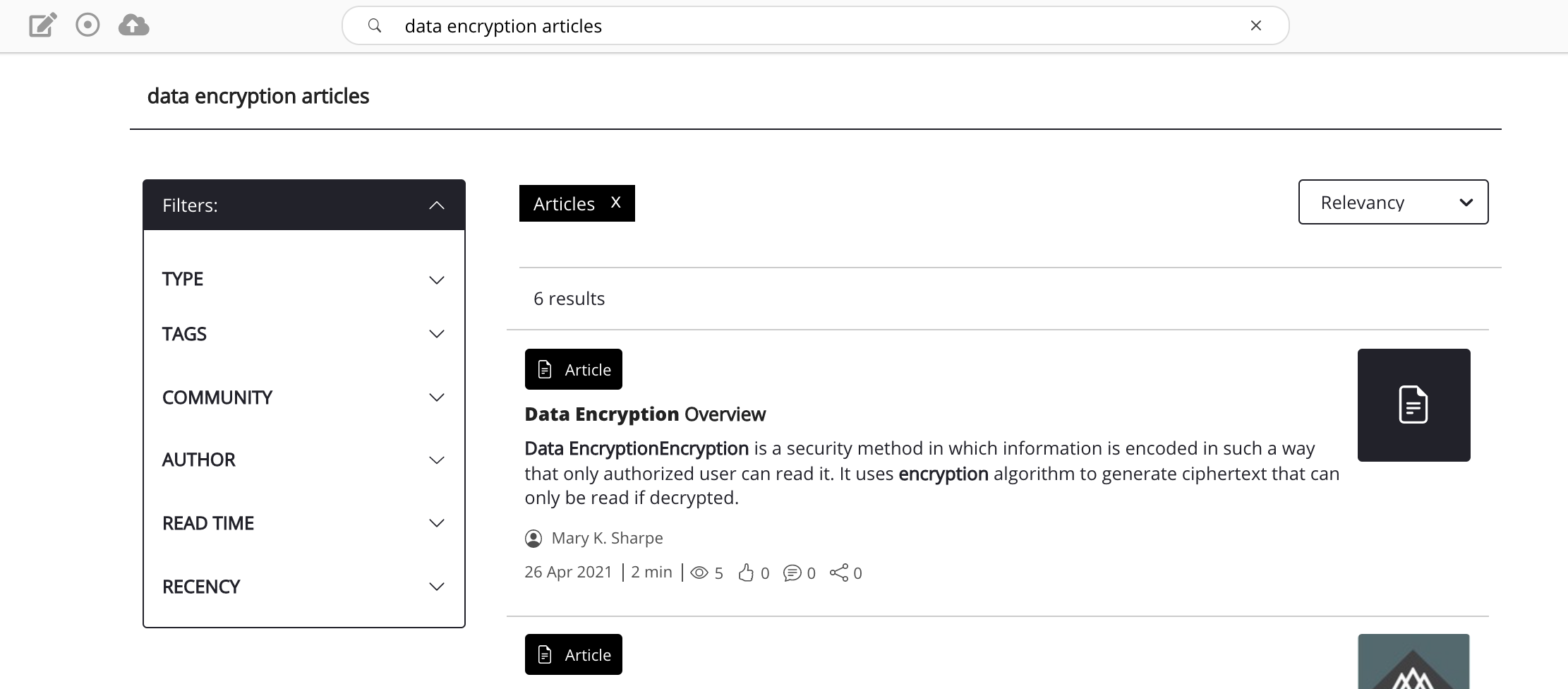 The search bar in the browser version of Fuse allows you to search for content from communities you have permission to see as well as other users, and you can manually apply filters to help refine search results to make them more relevant.