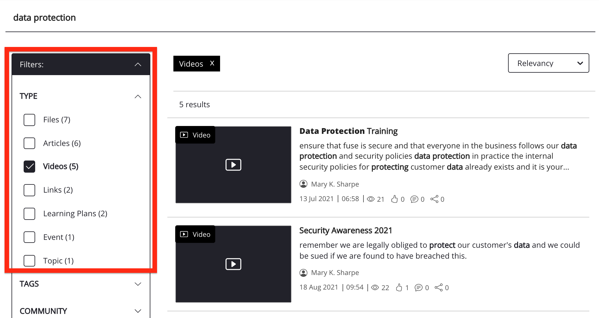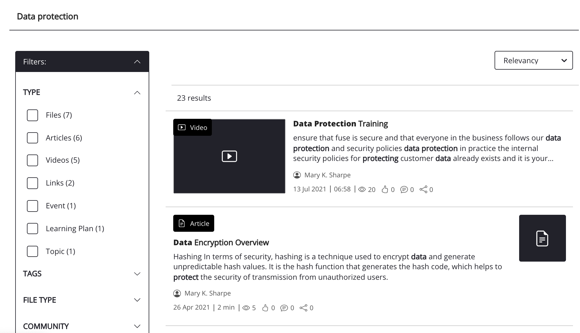 In the search bar at the top of the screen, enter a keyword or phrase. For example, Data protection.