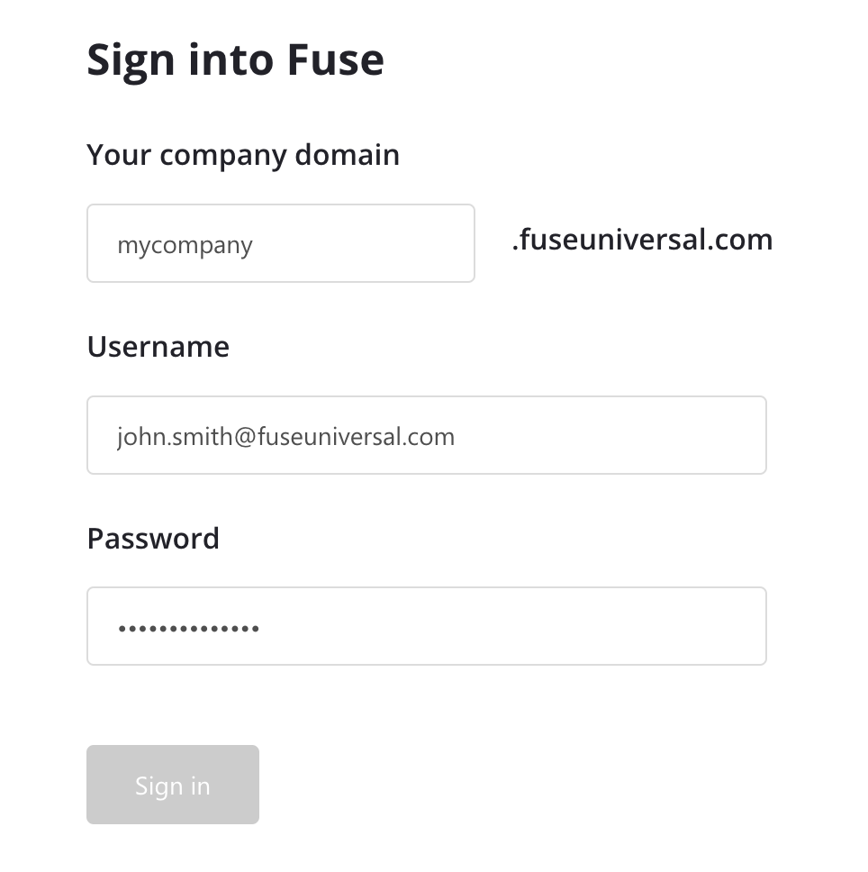 Company domain: The domain name of your organisation’s Fuse instance. For example, if the URL of your organisation's Fuse instance is mycompany.fuseuniversal.com, enter ‘mycompany’.