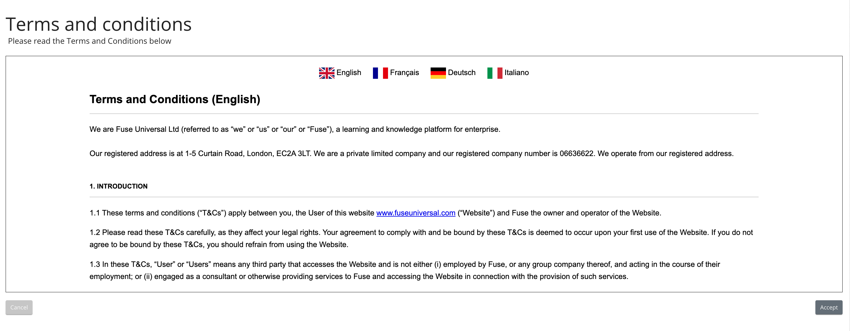 When you sign in for the very first time, you are presented with the terms and conditions. You must read and accept the terms and conditions before you can access the homepage of the platform.