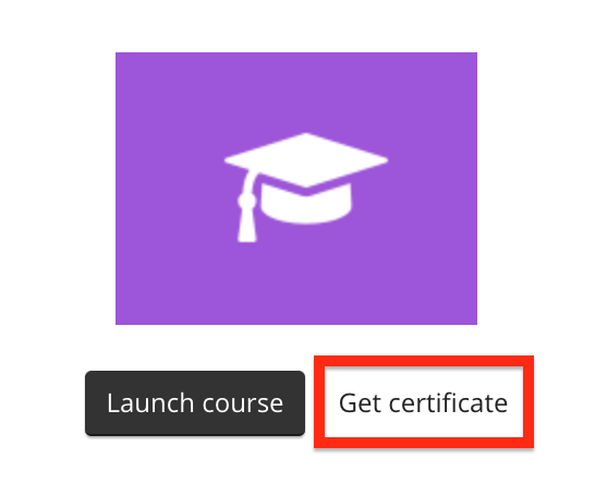 To view the last certificate you received for successfully completing the SCORM course, click the Get certificate link.