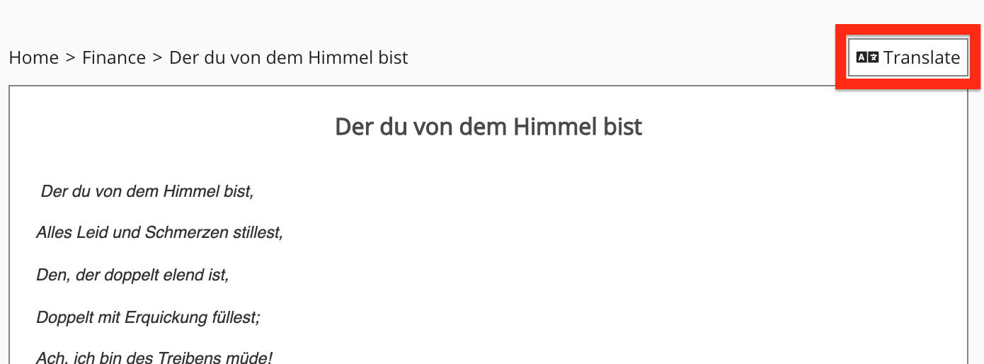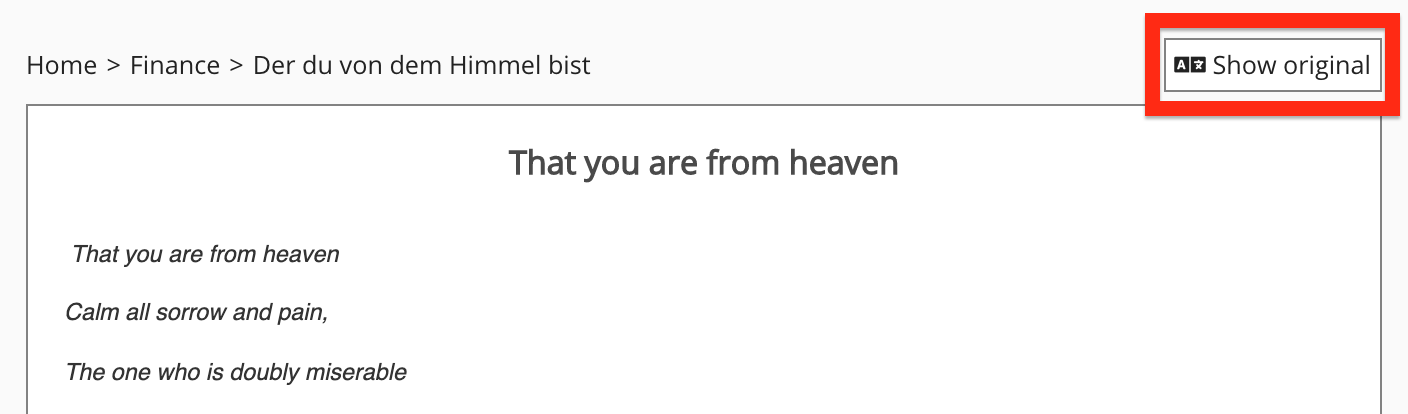 Content (including titles, descriptions, and main body) | Click the Translate button above the content to translate it to the language selected in your profile. ![]() Click the Show original button to revert the content back to the originally-published language. ![]() |