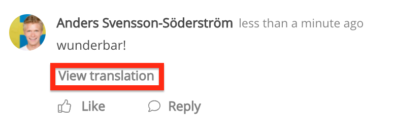 Comments posted underneath an item of content | Click the View translation button below a comment to translate it to the language selected in your profile. ![]() Click the View original button to revert the comment back to the originally-posted language. ![]() |