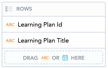 Drag Learning Plan Id and Learning Plan Title from the Data Catalogue, into the Rows section to add further detail.
