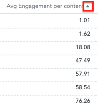 Clicking the upward arrow at the top of a column, ranks the data in descending order.