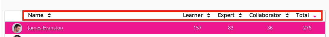 Total | The total number of points the user has gained across the Learner, Expert, and Collaborator categories combined. |