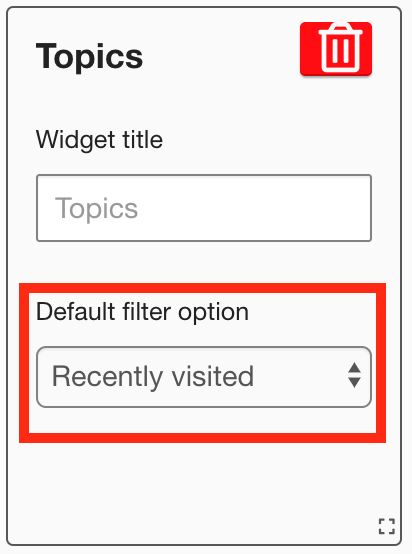 In the Default filter option dropdown, select the default filter. For example, If you select the Recently viewed filter, users will see a list of topics they have recently viewed by default, when viewing the Topics widget.