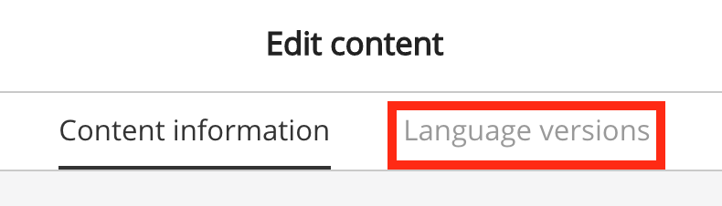 The Edit content screen appears.On the Edit content screen, click the Language versions tab.