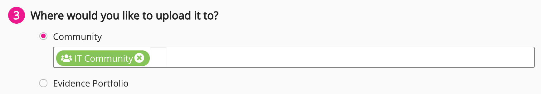 When uploading files to an Evidence Portfolio:The Notify all community members option is not available.
