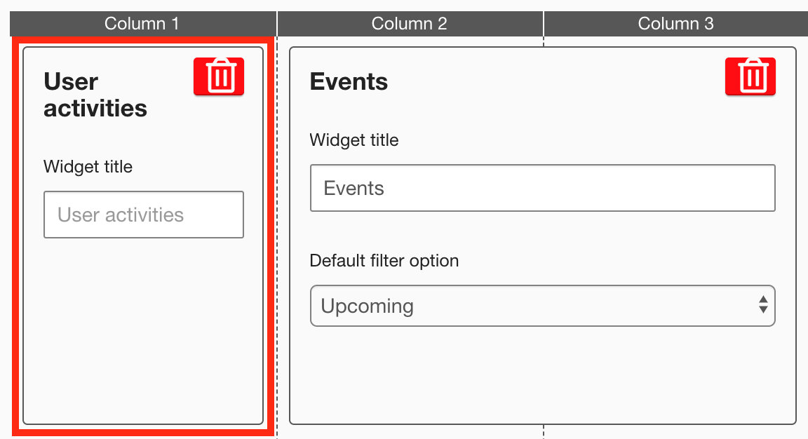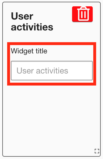 The User activities widget appears on the layout grid.[Optional] In the Widget title field, enter a custom title that will be displayed on the widget.