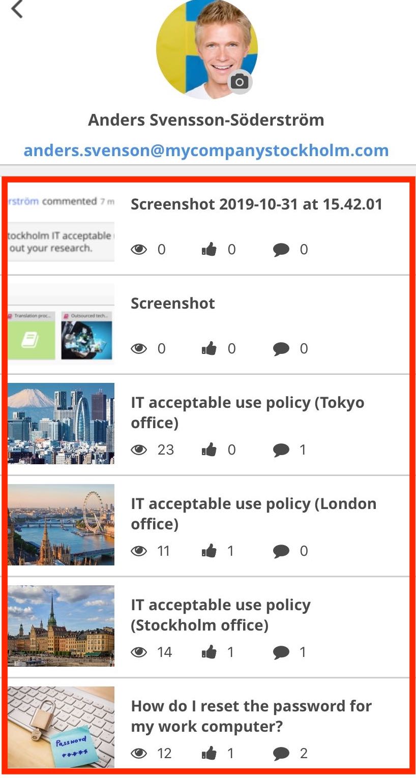 You can view a list of content you have posted on Fuse, such as questions, articles, files, and links.